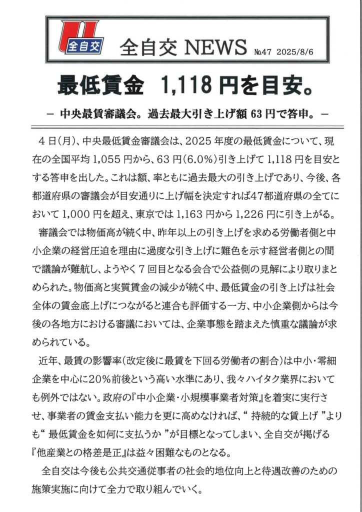 全自交NEWS No.47 2025/8/06を掲載しました。
