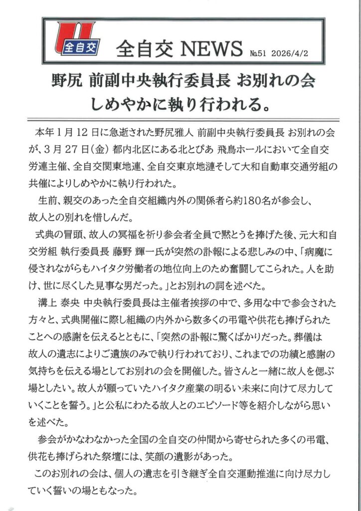 全自交NEWS No.51 2026/4/2を掲載しました。